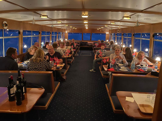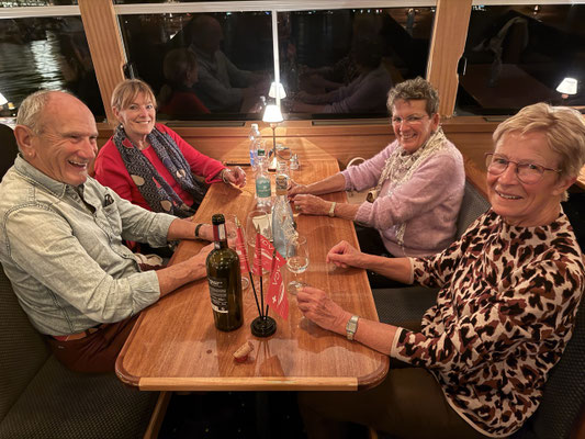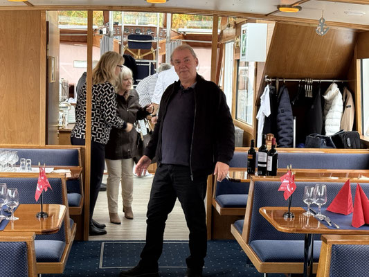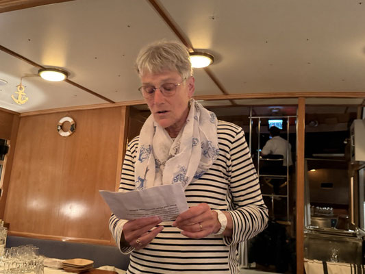 Bei traumhaftem Herbstwetter trafen wir uns zur Abschiffeten auf der Pegasus. Auf der Hinfahrt, begleitet mit einem Apéro und mit einer rassigen Kürbissuppe zubereitet von Barbara. Bei der Gedenktafel an der unteren Nas, hielten wir einen Moment inne und gedachten den verstorbenen Mitgliedern, welche Andy heruntergelesen hat.