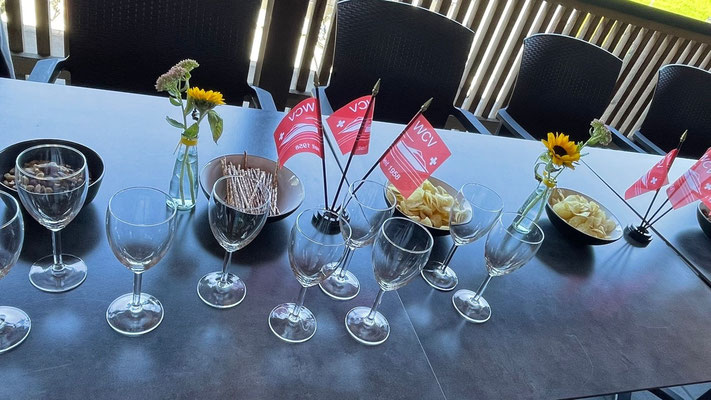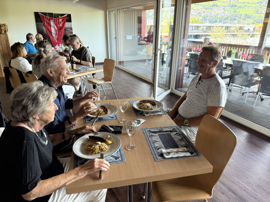 Das Wetter dieser Saison war sehr durchzogen, dafür wurden wir heute zum Saison Ende voll belohnt. Die Bilder sprechen für sich. Mit sehr feinem Weisswein gesponsert von Ernst Möckli starteten wir den Apéro.