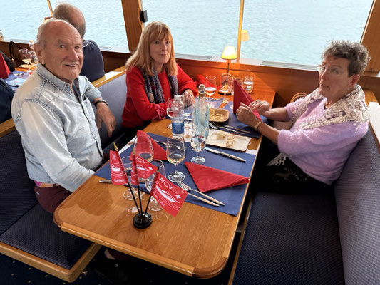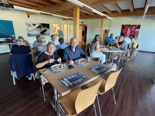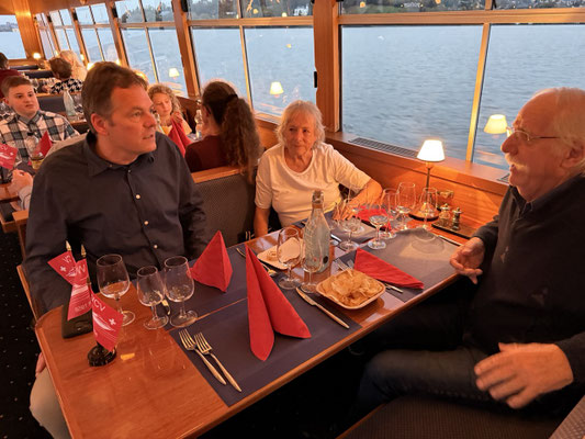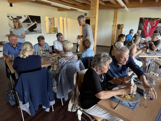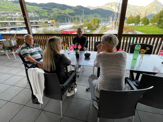 Da das Wetter am Anfang noch einigermassen schön war, haben wir uns spontan entschieden den Apéro draussen abzuhalten. Erstaunlich, niemand kannte das Seerestaurant ZEE vorher, umso erfreulicher war es dass es allen mehr als nur geschmeckt hat. Das Essen war hervorragend, das Personal sehr freundlich und aufmerksam. Angeregte Gespräche und Begeisterte Clubmitglieder. Was will man mehr .