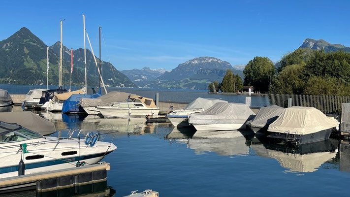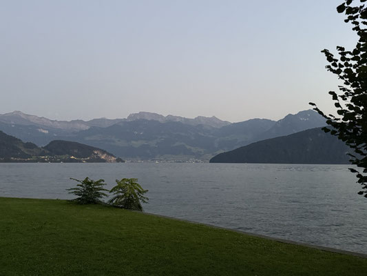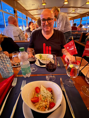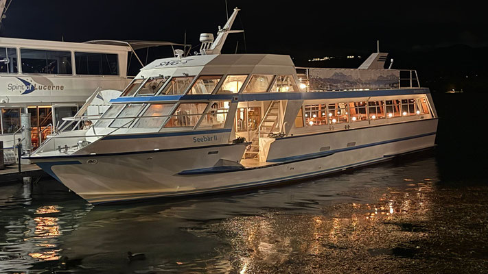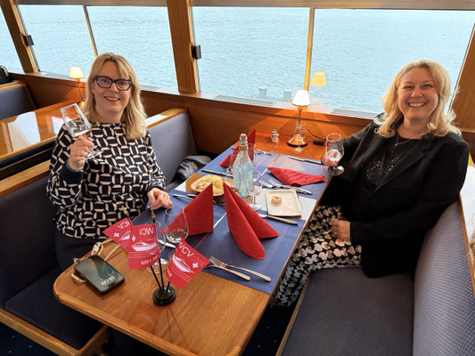 Wir hatten wirklich Wetterglück und wurden mit einem feinen Apéro auf der Aiola Insel überrascht. Nach angeregten Gesprächen konnten wir die mediterrane Küche von Ramiz mit wunderschönem Ausblick auf den Vierwaldstättersee geniessen..