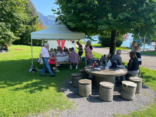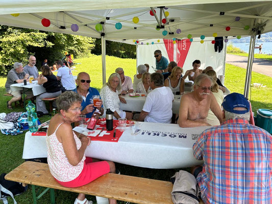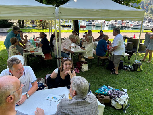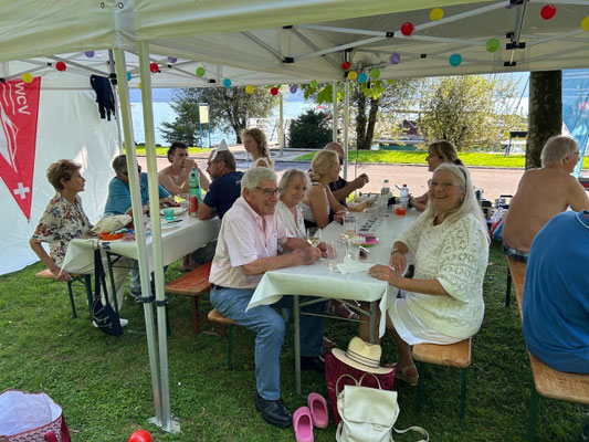 Traumhaftes Wetter an diesem Wochenende. Der Anreise mit dem Boot stand also nichts mehr im Wege. Unter den Bäumen direkt am See schön im Schatten, liesen wir uns es gut gehen. Trotz den heissen Temperaturen, schwangen einige das Tanzbein. Wir vom WCV hielten uns da dezent zurück. Die Älplermagronen waren sehr lecker und waren schnell verputzt. Wir haben es sehr genossen bei diesem herrlichem Wetter. Einige übernachteten im Hotel und konnten sich am nächsten Tag vor der Abreise noch am Buffet stärken. Ein sehr gelungener Anlass.