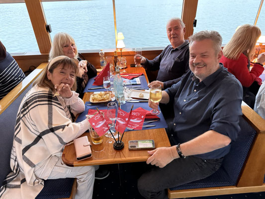 Leider machte uns das Wetter einen Strich durch die Rechnung. Nichts mit Leinen Los. Ein paar kamen zwar mit dem Kursschiff, aber die Meisten zogen das Auto vor. Es kann nur noch besser werden. Dem WCV verging dadurch das Lachen überhaupt nicht, im Gegenteil. Bei bester Stimmung liessen wir uns verwöhnen im Nidwaldnerhof. So gegen 17:00 gingen die letzten Clubmitglieder mit einem grossen Lachen im Gesicht nach Hause.