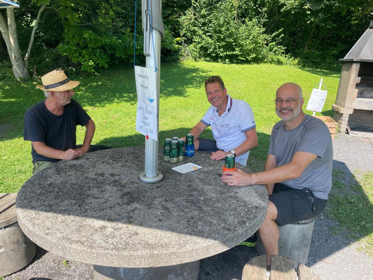 Der Sommer kam gerade rechtzeitig zurück. Bei heissen Temperaturen mussten wir uns zuerst mit einem feinen Drink, gesponsert von Schürch Getränke AG, herunter kühlen. Dazu noch eine kalte Dusche und ein Schwumm im kühlen See halfen auch noch etwas, bevor dann das Cheminée eingeheizt wurde. Das Grillieren ist eröffnet. Mit gefülltem Bauch und reichlich getrunken, schritt der Abend so langsam voran. Die Zeit verging mal wieder wie im Fluge. Einige machten sich so langsam auf den Heimweg, oder ihr Schlafgemach auf dem Schiff oder im Wohnwagen parat. Der Morgen empfing uns wieder mit dem schönsten Wetter. Nun heisst es Ablegen und zurück in den Hafen.